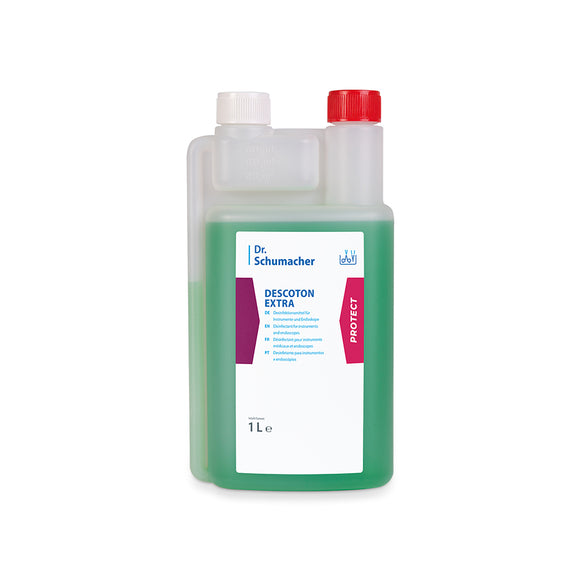 Το DESCOTON EXTRA είναι ένα ταχείας δράσης, ιοκτόνο, υγρό συμπύκνωμα για την απολύμανση ενδοσκοπίων και χειρουργικά εργαλεία όλων των ειδών. Η σύνθεση προϊόντος χωρίς φορμαλδεΰδη χαρακτηρίζεται από ευελίξια και εξοικονόμηση, ευρεία αποτελεσματικότητα, συμπεριλαμβανομένων των ιοκτόνων και φυματιοκτόνων καθώς και καλής συμβατότητας υλικού.